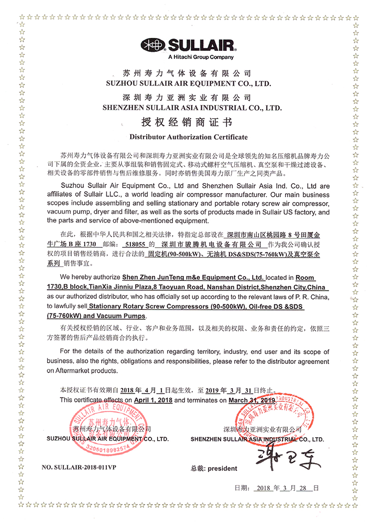 壽力授權(quán)證書2018