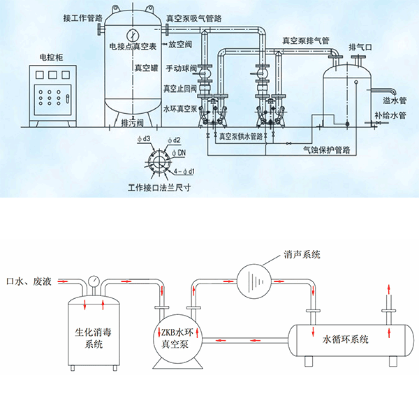負壓吸引系統由中心吸引站、吸引管道、負壓吸引終端等組成。吸引系統的負壓源是中心吸引站的真空泵機組通過真空泵機組的抽吸,使吸引系統管路達到所需負壓值,在手術室、搶救室和各個病房終端處產生吸力供醫療使用。 中心吸引站有真空泵、真空罐、負壓自動控制柜、報警器、排污罐、負壓管道和終端等組成。真空泵一般設置2臺,一用一備,保證工作不間斷。真空罐是儲存負壓的容器,防止真空泵頻繁起動。負壓自動控制柜能分別對兩機組進行手動控制和自動控制啟、停,達到自動切換。當壓力達到報警壓力值時,進行聲光報警,其報警壓力下限為-0.073MPa,上限-0.019MPa。停電后自動投入運行。排污罐用于存放吸引管道系統內的污物,定期排放。報警器安裝在值班室內,其聲光報警在60dBa噪聲的環境下,在1.5m范圍可聽到看到。 中央負壓系統RVM是由一臺或多臺旋片式真空泵、真空儲氣罐、汽水分離器、過濾器(多個)、PLC電氣控制箱等配置組成,通過PLC電器控制箱系統可實現自動/手動控制、故障報警,最經濟節能的保證系統持續供氣。 真空系統采用二級過濾:第一級為油、灰塵、雜質過濾,第二級為細菌過濾。VC系列真空泵是該系統的主要用泵,具有結構緊湊、能耗低、噪音低、真空穩定、震動小。與水環泵相比更具有環保、節能、操作簡單及維護方便等特點。可在0.5mbar(絕對壓力)和10mbar(絕對壓力)使用。同時,該規格的真空泵可在密閉的空氣抽氣或長期的真空下使用。并可容忍少量的水蒸汽,但不能處理水、其他液體、腐蝕性氣體或蒸汽。 產 品 特 性